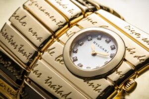 El movimiento mecánico Lady Solotempo de manufactura Bvlgari, con 50 horas de reserva de marcha, da vida a esta pieza que también brilla por su microingeniería.