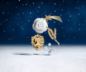 Bajo el nombre Winter Constellation, la maison reinterpreta cinco de sus símbolos más emblemáticos —el león, la camelia, el cometa, el trigo y las perlas— como guardianes de energía y fortuna.