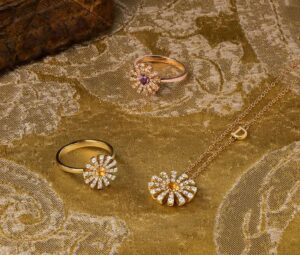 Si buscas algo inolvidable, la colección Belle Époque es un imprescindible; sus piezas geométricas evocan elglamour del cine clásico, perfectas para la mujer sofisticada. Para un espíritu más romántico, Margherita cautiva con sus delicadas flores de diamantes y piedras de color, inspiradas en la realeza italiana.