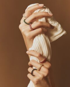 La firma Pierduca exhibe piezas con esmaltados y rodios de colores en su colección ‘Dreams’. En el que cada joya irradia atemporalidad y al mismo tiempo, captura la esencia de los sueños en sus piedras preciosas y diseños únicos.